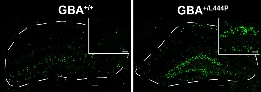 How do mutations in GBA1 and glycosphingolipids affect cognition? Heterozygosity for severe GBA1 mutations confers a 5X increase in risk of cognitive decline in PD. Pathologic α-synuclein is increased in the hippocampus, a brain region important for cognition, in mice heterozygous for GBA1L444P. Do increased levels of the lipid, glucosylsphingosine, caused by GBA1L444P play a role cognitive decline? We are testing novel pharmacologic compounds to reduce pathologic accumulation of glycosphingolipids to prevent cognitive decline in PD and Dementia with Lewy Bodies.